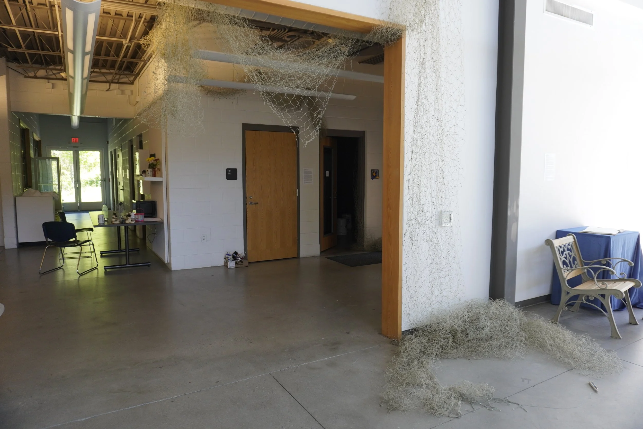 Mixed Media, video projection, gill net, Piano compositions/found sounds.